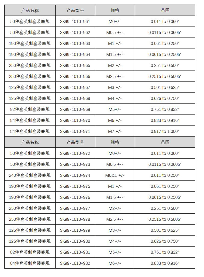 规格0.0615~0.2505 型号SK99-1010-964