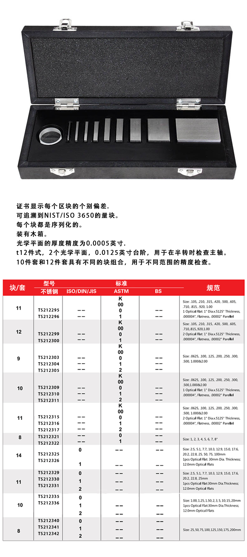 • 8件套千分尺校对用块规和平晶量块 不锈钢